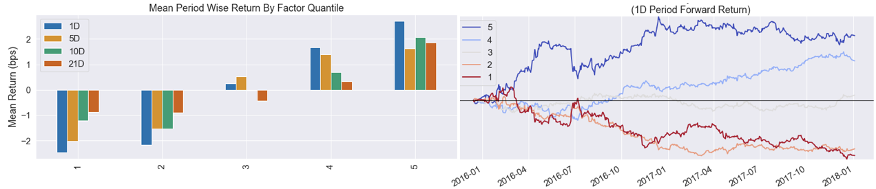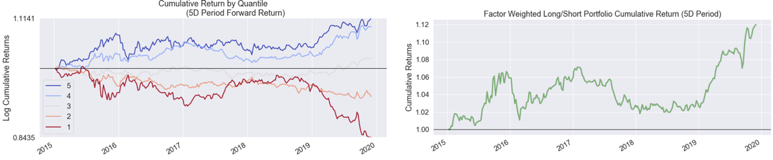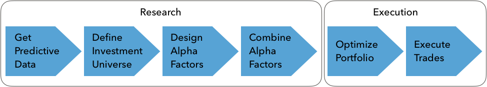 Alpha factors generate signals that an algorithmic strategy translates into trades, which, in turn, produce long and short positions. The returns and risk of the resulting portfolio determine whether the strategy meets the investment objectives.